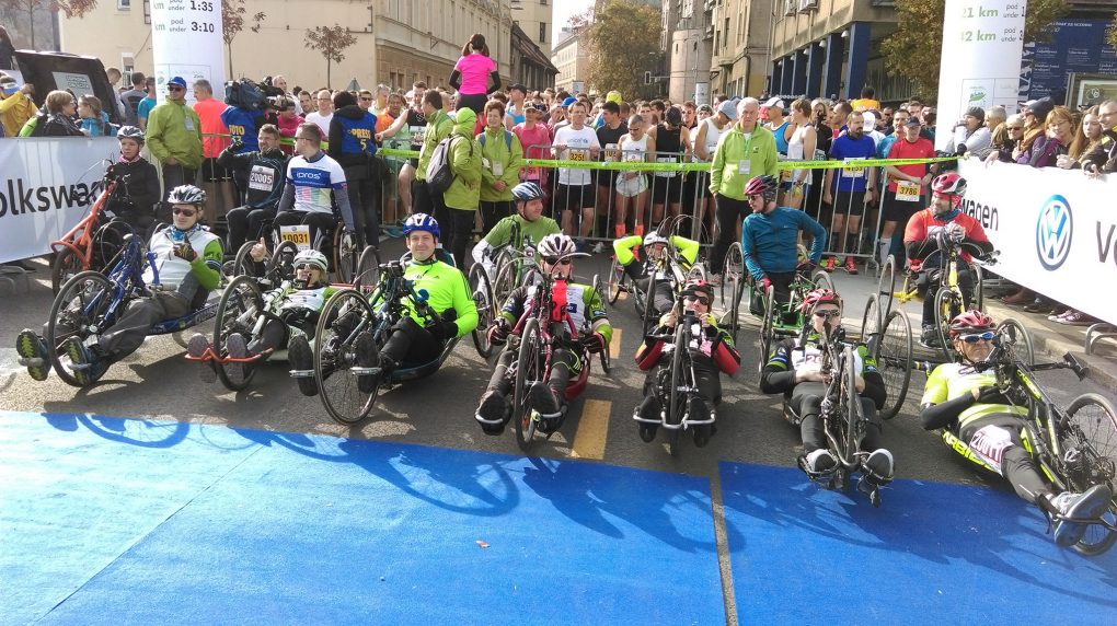 Zadnji vikend v oktobru je tradicionalno rezerviran za Volkswagen Ljubljanski maraton. V nedeljo, 30. oktobra so se na 21-kilometrski trasi odlično odrezali ročni kolesarji pokrajinskih društev Zveze paraplegikov in KK Bauerfeind. Nastopilo je 13 ročnih kolesarjev in 2 predstavnika s freewheel-om. S časom 0:35:47 je slavil Marko Sever. Drugo mesto je s časom 0:37:26 osvojil Marko Doberšek (DP Gorenjske), tretji pa je bil italijanski predstavnik Ronald Ruepp (0:39:42). Poleg vodilnih so se maratona udeležili predstavniki Zveze paraplegikov in KK Bauerfeind Edo Ješe, Gregor Habe, Peter Cerar, Matej Lednik, Ivo Ozebek, v ženski konkurenci Anka Vesel (DP Gorenjske) in Tanja Cerkvenik ter freewheel-ista Janez Učakar (DP Gorenjske) in Marko Zupančič. Poleg drugouvrščenega predstavnika Italije, so nastopili še Italijan Robert Kaufmann in predstavnika Republike San Marino Rosano Valenti in Mirko Tomassoni.[/vc_column_text][/vc_column][/vc_row][vc_row][vc_column][vc_single_image image=”3630″ img_size=”large” alignment=”center”][/vc_column][/vc_row]