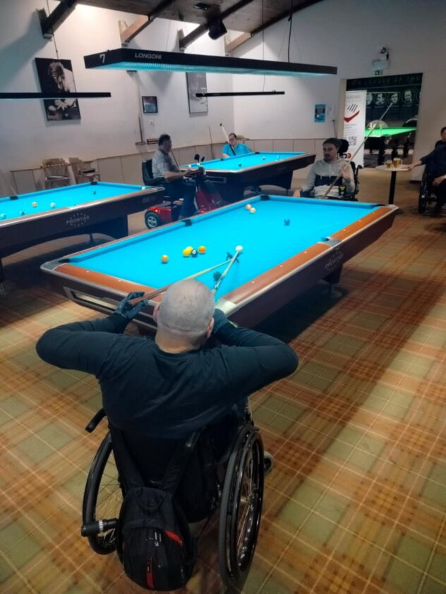V četrtek 12. februarja se je 10 najbolj zagretih biljardistov Slovenije v Biljardnici Kaval (Ljubljana) pomerilo za naslov najboljšega v Sloveniji. Moramo priznati da sta manjkala naša najboljša biljardista na vozičkih; svetovni prvak Matej Brajkovič, ki je vodil tekmovanje, in tretji iz SP David Slaček. Tekmoval pa je naš član Aljoša Habjan (jaz), moram priznati da so bili moji rezultati podobni vremenu na dan tekmovanja – bolj deževno z malo sonca. Na žalost se mi z eno zmago in tremi porazi ni uspelo uvrstiti v polfinale, ampak na to nisem niti računal. Igrali smo v dveh skupinah po pet tekmovalcev, nato je sledilo polfinale in finale. Pred tekmovanjem smo imeli že malico, med tekmovanjem pa kar v biljardnici še res okusno kosilo. Zelo smo uživali v druženju, upam da se mi drugo leto pridruži še kakšen član društva. Še nasvet iz mojih izkušenj: trening biljarda iz igrice na telefonu ne pomaga.