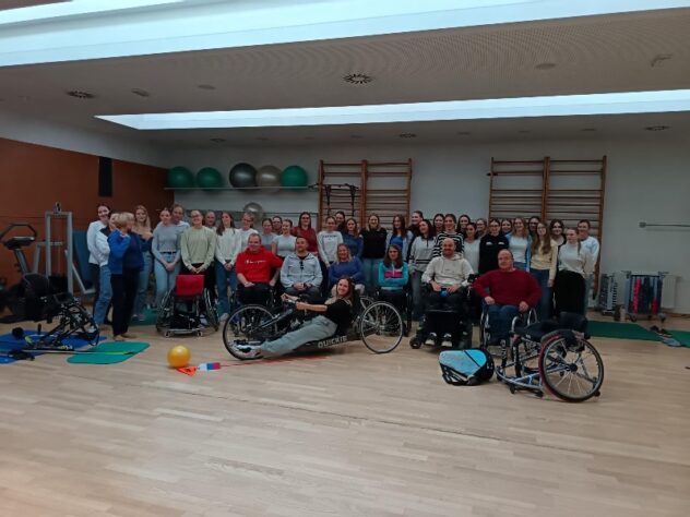 Po kratki predstavitvi društva so predstavili košarko, smučanje, badminton, tenis, bocchio, ročno kolesarstvo, ples na vozičkih in slikanje z usti. Vse študentke so se tudi preizkusile v teh para športnih panogah in v slikanju z usti.