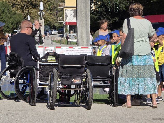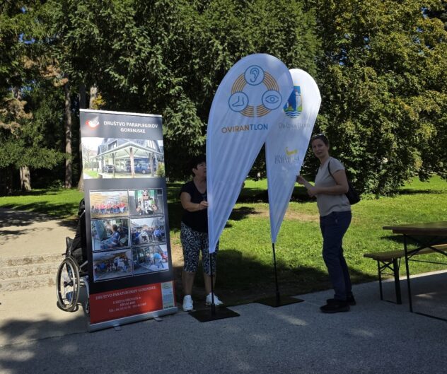 Na stojnicah na Jezerski promenadi smo sodelujoči predstavili naše organizacije in za obiskovalce pripravili tri tipe ovir, s katerimi se srečujemo gibalno ovirani in osebe z motnjami vida in sluha.