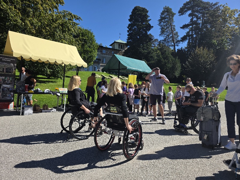 Naši člani so pripravili poligon z ovirami, na katerem so se obiskovalci lahko preizkusili v vožnji z invalidskimi vozičkih in se soočili z različnimi izzivi, s katerimi se gibalno ovirani sreĉujemo v javnem okolju : prestrme klanĉine, površine, ki nam otežujejo gibanje (travnate površine, rešetke, ozki prostori…).