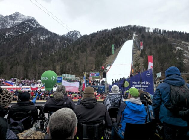 Zaradi zapletov na cesti smo zamudili začetek tekme. Ob prihodu na parkirišče smo se hitro odpravili proti prostoru namenjenemu invalidom. Tu moramo posebej pohvaliti vse planiške delavce in prostovoljce, ki so nam pomagali premagati strmi klanec iz vhoda do prizorišča. Prostor namenjen nam, je bil tudi letos dovolj velik in nam tako omogočil lep pogled na letalnico. Videli smo razplet zelo zanimive tekme, kjer je Domen osvojil drugo mesto. Ob podelitvi smo dvakrat tudi poslušali in zapeli Zdravljico, saj je Domen Prevc osvojil tako mali kot tudi veliki kristalni globus.